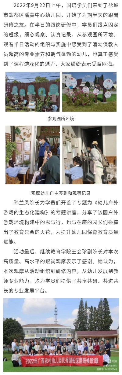 “国培计划(2022)”广西农村优秀园长深度研修班 ——走进盐都区潘黄中心幼儿园