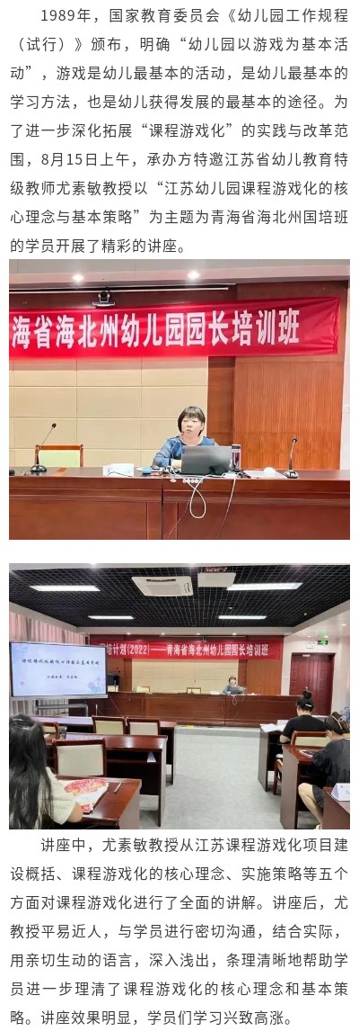 游戏是儿童的生命|尤素敏教授为青海省海北州国培班学员开设讲座