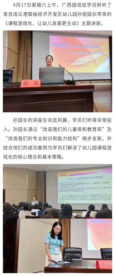 孙丽园长为广西国培学员带来《课程游戏化,让幼儿发展更生动》主题讲座