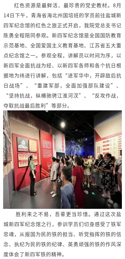 行红色之旅 温峥嵘岁月|青海省海北州国培班学员参观盐城新四军纪念馆
