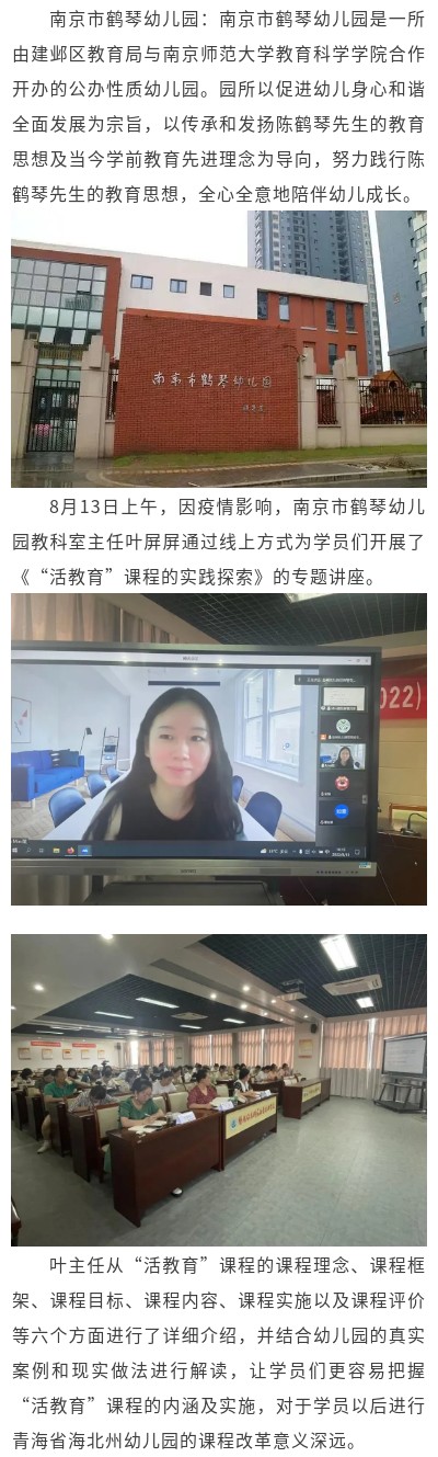 活教育,全儿童|南京市鹤琴幼儿园叶屏屏主任为青海学员作线上讲座