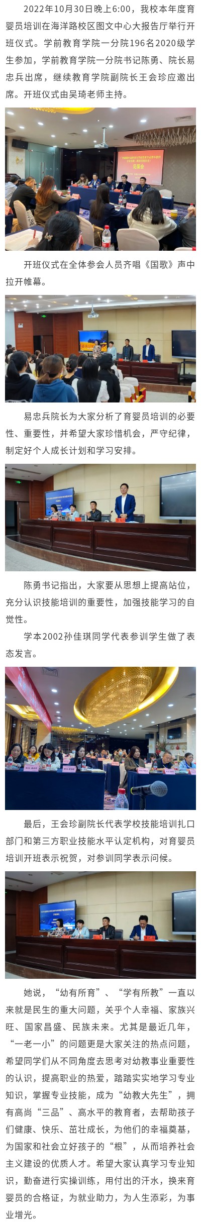 2022年我校首期育婴员培训在学前教育学院一分院开班