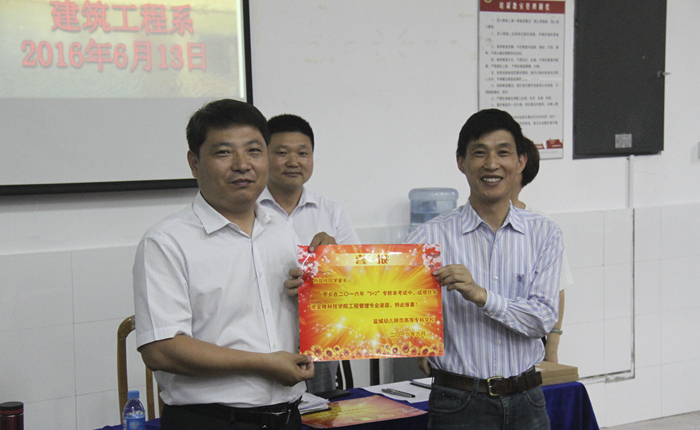 2016613日下午,建筑工程系在二号教学楼9号阶梯教室召开了学习标兵经验汇报暨向家长代表颁发喜报大会,会议由周加林主任主持,学校过渡时期领导小组成员孙永龙教授出席,系部班主任和所有同学参加了大会。