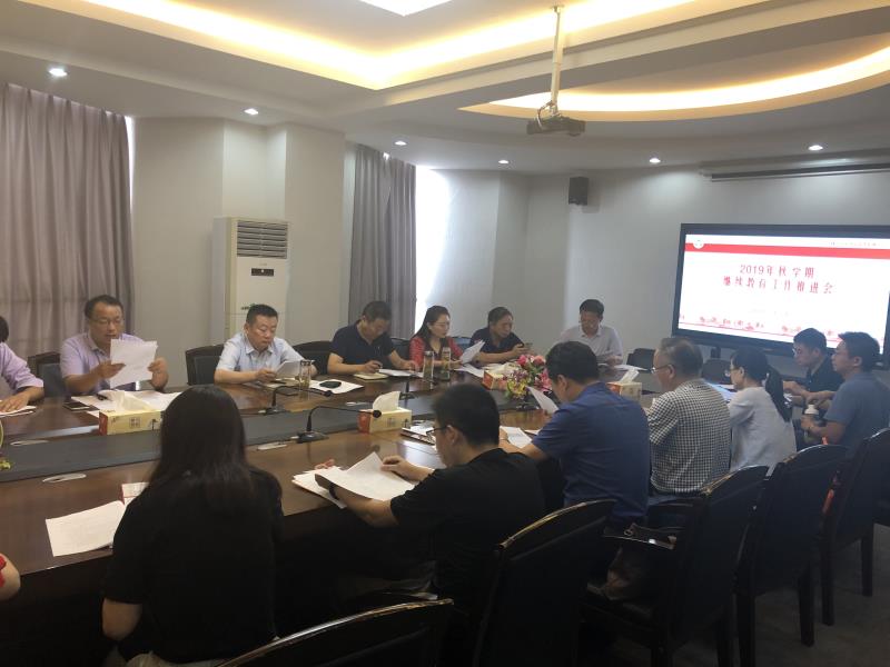 2019年9月4日下午,我校2019年秋学期继续教育工作推进会在学海路校区行政楼5楼中会议室召开。出席会议的有继续教育学院、财务处、以及六个二级学院的领导和老师,姜统华校长出席会议并讲话。会议由继续教育学院陈华书记主持。