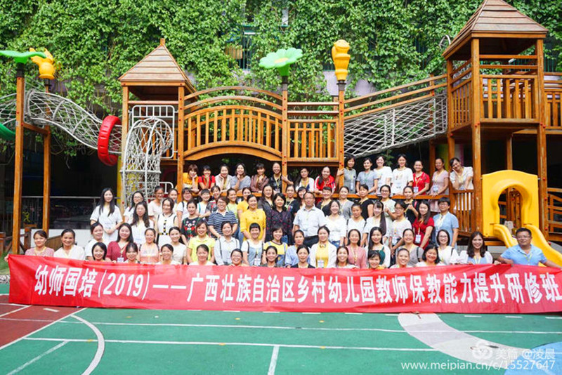 2019年9月26日下午,2019年广西乡村幼儿园教师保教能力提升研修班的学员们走进了横县横州镇幼儿园,就“乡村幼儿园心理健康教育活动与家园合作的有效策略”进行跟岗观摩。横州镇幼儿园吴世梅园长、莫芳副园长进行了接待。凌霞老师主持了各项活动。