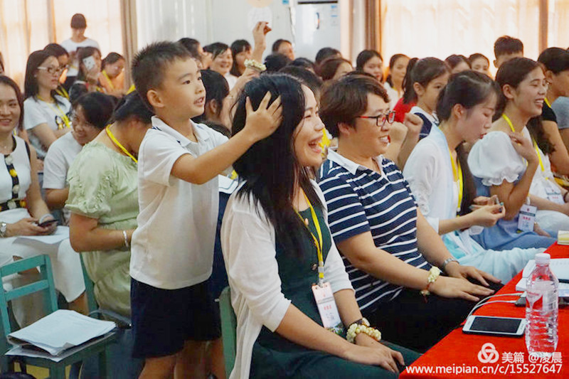 签到过后,学员们来到了报告厅,观摩陈凌老师带来的大班音乐游戏《有趣的按摩师》,孩子们跟随音乐节奏用夸张有趣的捶、捏、揉、切、拍等按摩动作进行自主创编,体验着参与音乐游戏的快乐!他们还现场帮听课的学员老师进行了按摩,舒服了老师,健康了身体,快乐了自己!