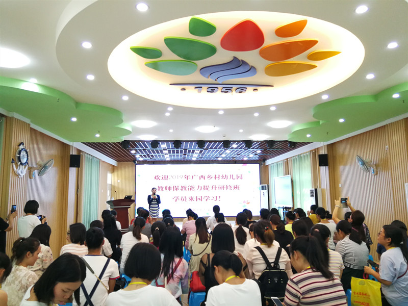 2019年9月27日下午,2019年广西乡村幼儿教师保教能力提升培训班的学员们来到了基地幼儿园考察的最后一站——广西民族大学幼儿园,在这里,她们听报告、看班级、游览环境创设,观摩幼儿户外活动;记笔记,写反馈意见,与幼儿园师生交流,度过了名园观摩的最后半天。