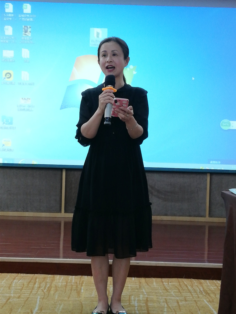 2019年9月28日上午,江苏省特级教师、宿迁市第一实小幼教集团园长、湖滨新区幼教专干、江苏省优质园验收评估专家、江苏省幼儿园课程游戏化领衔人、江苏省幼儿园课程游戏化督导专家、宿迁市学前教育委员会秘书长、宿迁市幼教学科教学领军人物、宿迁市教育科学研究课题成果鉴定专家章兰来到绿城南宁,为2019年国广西培班的学员们做了“追随幼儿的课程探索之旅”的报告。此次讲座由学员黎晓红进行专家介绍,学员冯瑶嘉做了总结。