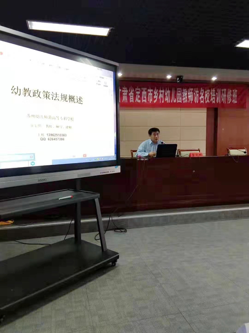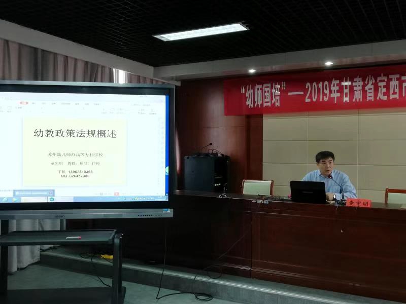 2019年10月14日上午,我校邀请童宪明教授在学海路校区五楼国培教室为参加定西市乡村幼儿园教师访名校培训的58位学员解读《学前教育政策法规》。王会珍副院长主持讲座。