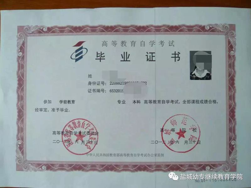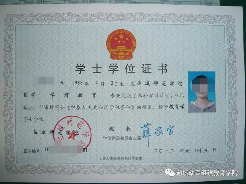 4.学生通过盐城师院与我校合作自考助学考试取得的学历、学位证书是什么样的?