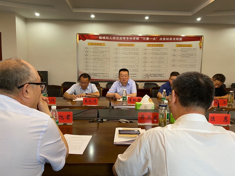 戴永湖副校长代表学校对吴主任一行在酷暑之下不辞劳苦组织评估工作表示欢迎,他向专家组介绍了我校“四脉合流、百年历史、千亩校园、万名师生”的基本情况,他说:“我校聚力高质量发展,积极策应江苏沿海和长三角经济区发展战略,奋力建设特色鲜明的地方应用型高校”。他还介绍了学校正不断深化 “明德、健行、思源、致远”校训内涵,弘扬“崇学正行、臻美至善”的价值追求,打造具有幼专标识的特色文化——“四个文化”, 即鲁艺文化、师范文化、和合文化、臻美文化,学校目前正倾力打磨《华中鲁艺记》音乐剧,将为明年建党100周年、华中鲁艺成立80周年献礼。