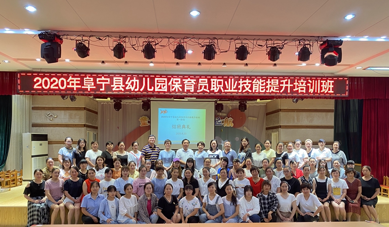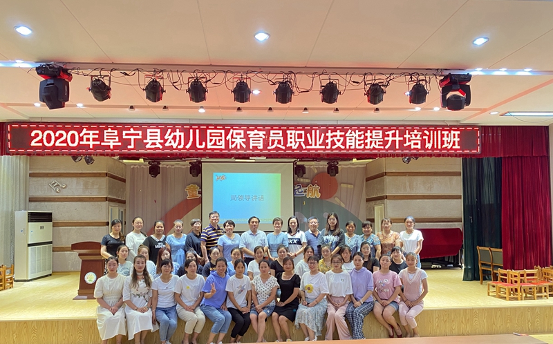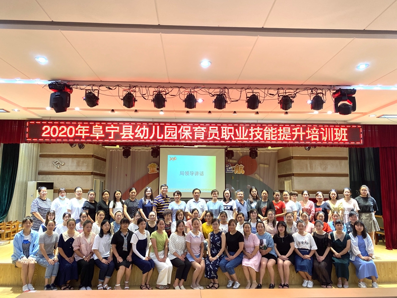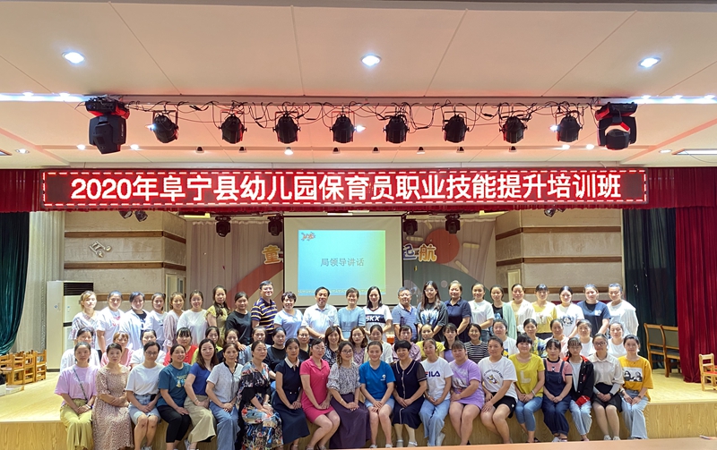 2020年8月20日下午,阜宁县幼儿园保育员技能提升培训结班典礼在东风路幼儿园举行,阜宁县教育局赵永林副局长、学前办姚红主任、教研员李艳艳及近300名学员参加了结班典礼。典礼由盐城幼专继续教育学院王会珍副院长主持。