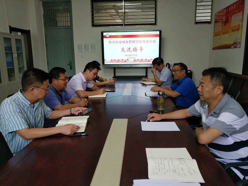 2020年8月30日下午,城市管理学院李鹏院长、顾传甲副院长到我院交流继续教育工作,学院领导班子全体成员参与了接待工作。
