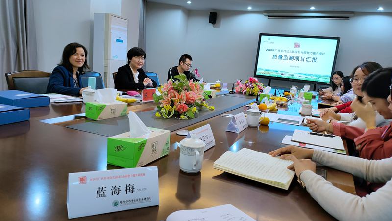 2020年10月13日,广西教育厅李桂良处长一行3人来到盐城幼专,对正在举办的2020年广西乡村幼儿园园长办园能力提升国培项目进行质量监测。李处长一行通过召开座谈会、聆听项目开展报告、察看现场培训文化、随机访谈授课教师和学员、推门听课、查看台账资料等环节,对国培项目开展情况做了全方位的监测。我校姜统华校长、肖琦园长、程永润主任以及项目实施部门继续教育学院王礼才院长、陈华书记、王会珍副院长、孙锦涛科长出席并陪同监测。