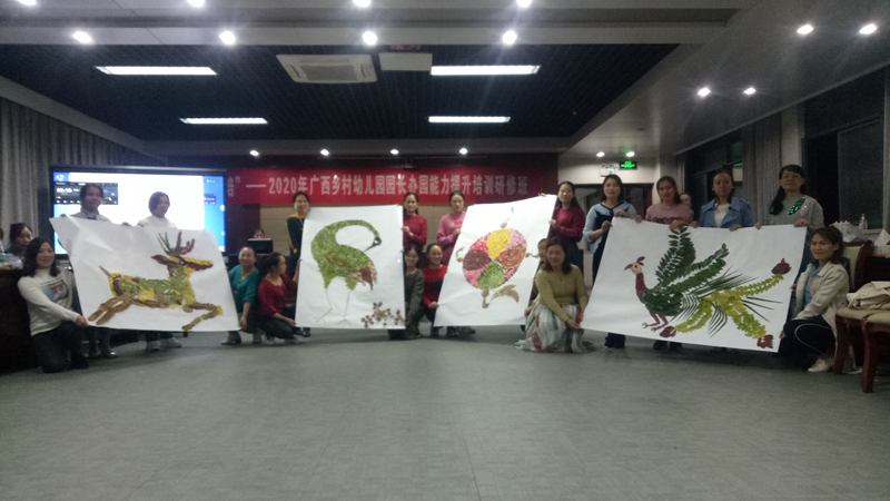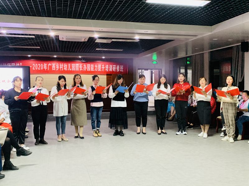 2020年10月20日晚,华灯初上,行政楼5楼国培教室灯火辉煌,来自广西的83位园长们集聚一堂,唱响本次培训的联欢晚会。项目组王礼才院长、王会珍副院长、孙锦涛科长、张蕾老师、以及学前教育学院2位来自玉林的学生受邀出席,与学员们携手联欢。