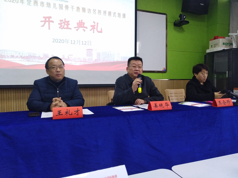 2020年12月11日,盐城幼专在继广西、内蒙古两个国培班之后,又一次迎来了甘肃定西市骨干教师访名校浸润式培训班的50位名教师。2020年12月12日,在学海路校区行政楼3楼国培教室,举行了开班仪式,组织了破冰活动,聆听了两场讲座,召开了第一次班委会议。姜统华校长出席开班典礼并讲话、王礼才院长做了方案解读。王会珍副院长主持了开班典礼。