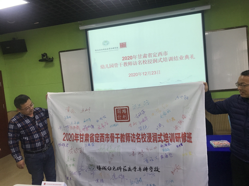 2020年12月23日,定西骨干教师访名校浸润式培训结班典礼在学海路校区三楼国培教室2举行,继教院王礼才院长、孙锦涛科长出席结业典礼,王会珍副院长主持了结业活动。至此,我校2020年度承办的国培项目全部圆满结束。