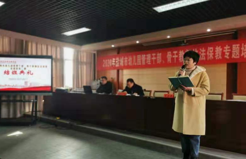 在结班典礼上,阜宁县新城幼儿园的张雪莲园长代表学员进行了学习心得分享,从她的交流中可以看出,5天的培训开阔了视野,更新了理念,学到了知识,掌握了技巧,达到了培训班举办的预期目标。
