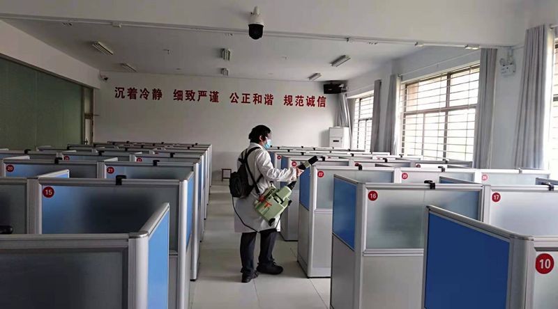 我们同时全力做好考试疫情防控工作。提前拟好考试疫情防控方案,报备学校疫情防控领导小组,做好考场卫生整洁、杀灭毒工作,所有考务监考人员提前14天健康日报,配备专业医护人员全程指导,把好考生进入校园检测关。在考试过程中,坚决执行全过程佩戴口罩、注意1米线保持距离、考生信息登记及健康承诺签名等措施,确保疫情防控不放松。