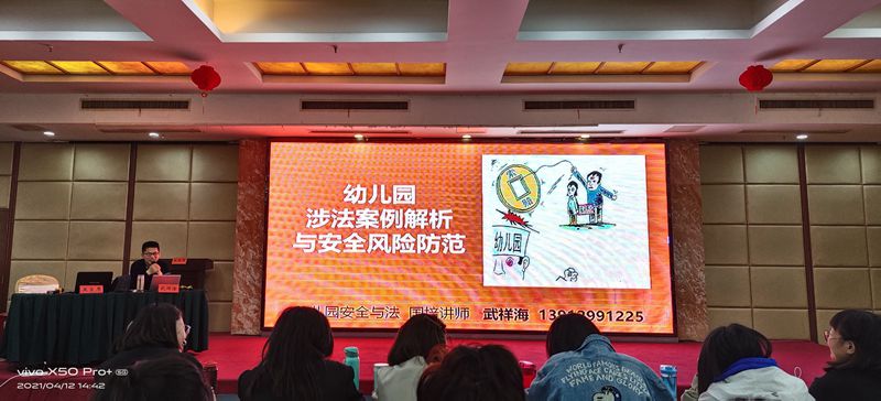 2021年 4月12日,206位来自内蒙古自治区的幼儿园骨干教师在温泉宾馆双喜厅聆听了两场讲座,分别是童宪明教授讲授的《幼儿教育法规政策概述》和武祥海老师的《幼儿园涉法案例解析与安全风险防控对策》。