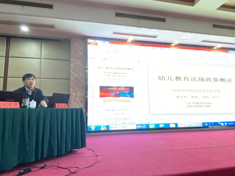 童宪明教授为学员们详细讲解了《中华人民共和国宪法》中有关教育的条款、《中华人民共和国民法典》中有关幼儿园的内容、《中华人民共和国教育法》、《中华人民共和国教师法》、《中小学和幼儿园教师资格考试标准(试行)》、《幼儿园园长、教师专业标准》、《中华人民共和国民办教育促进法》、《中华人民共和国未成年人保护法》等法律法规知识,播放了典型的案例视频,加深了学员对法律法规的理解。