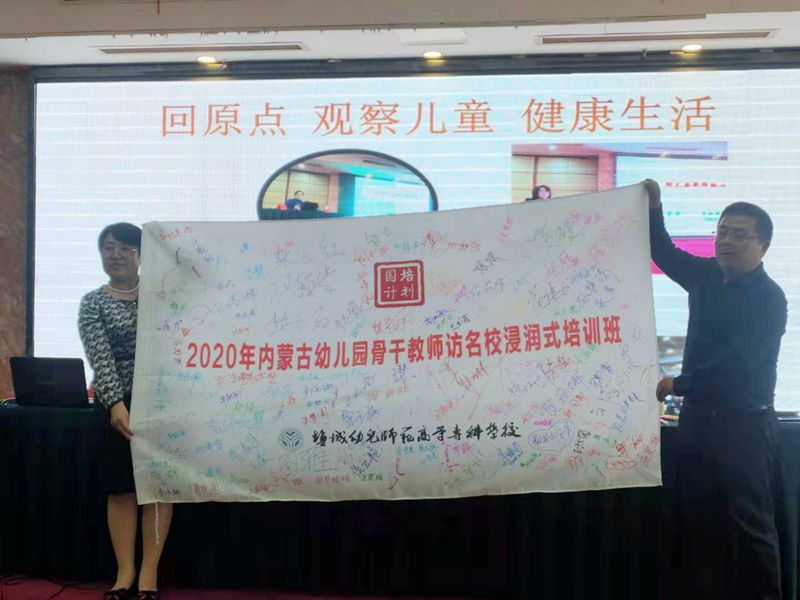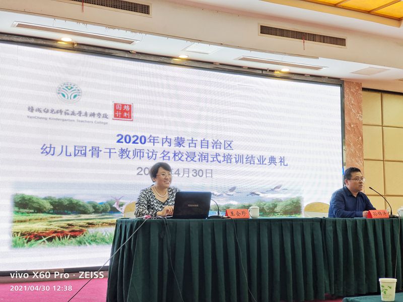 2021年4月30日,2020年内蒙古幼儿园骨干教师访名校浸润式培训顺利结班,为期20天的培训圆满结束。结班典礼由孙锦涛科长主持,王会珍副院长出席并做项目总结。