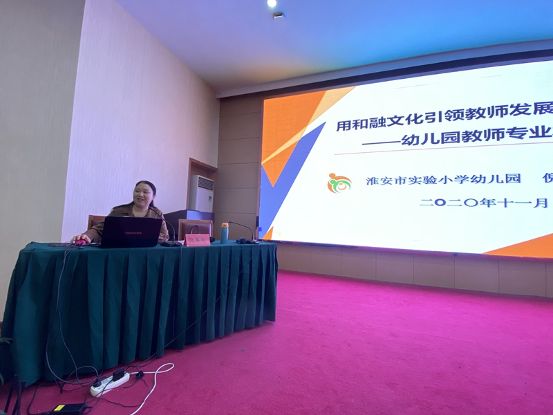 下午的课程从开场一段欢快的律动开始,紧接着,淮安的幼教专家倪春玲教授为我们带来了《用和融文化引领幼儿园教师专业发展》。 倪春玲教授从幼儿园教师专业标准的内涵和价值、教师专业标准的职业定位、幼儿教师专业发展的队伍引领以及自我实践四个方面,为我们理清了“和融文化”的思路。