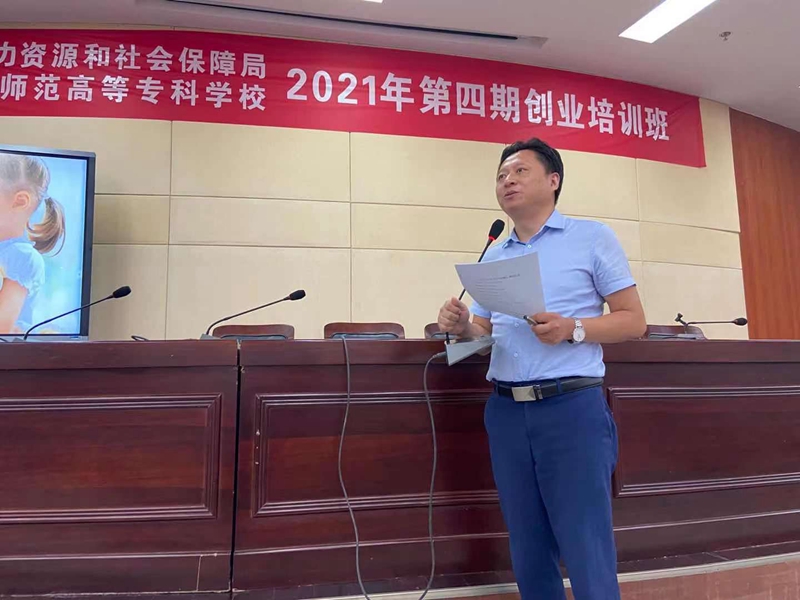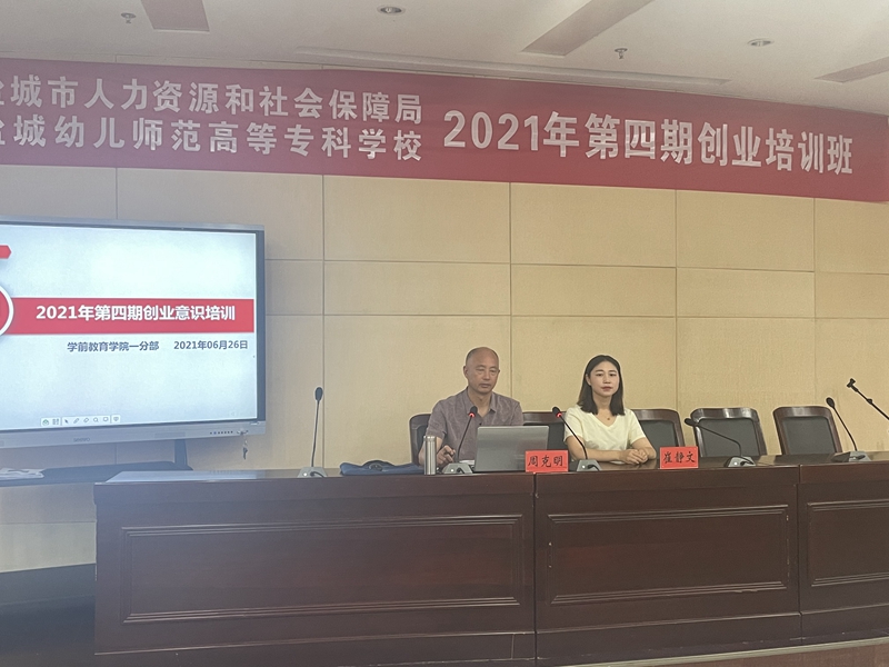 2021年6月26日上午,我校第四期创业意识培训在北校区图文中心报告厅举行开班典礼。参加开班典礼的有学前教育学院一分部易忠兵院长、培训班班主任崔静文、创业导师周克明院长,以及学前教育学院一分部100名参训学生。