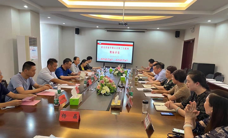 评估分为两个阶段进行。第一阶段,专家听取了姜校长关于学校发展、专业设置、师资配备、社会服务等方面的汇报,详细地查看了台账资料,进行了交流访谈。第二阶段,在学前教育学院和建筑工程学院领导的带领下,查看了技能认定的现场、设施设备等情况。