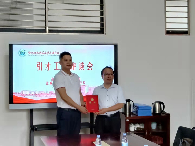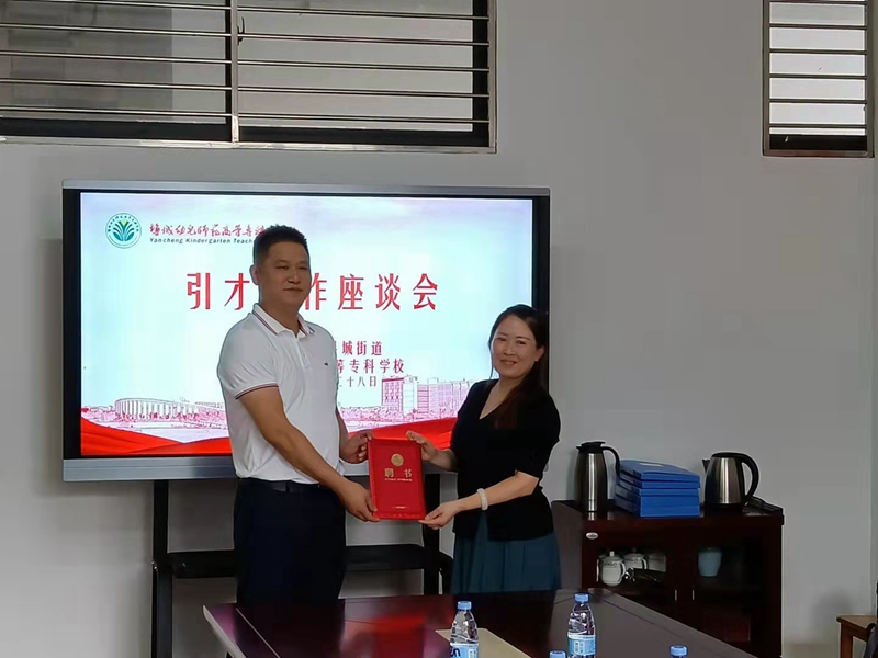 9月28日上午,盐南高新区科城街道来我校推动校地合作,在我校设立引才工作站。上午九点,合作双方在学海路校区2号教学楼一楼举行授牌仪式。继续教育学院院长王礼才、科研处处长周梅香、人文学院院长仇玉文、学前二分部院长邓晓玲、城市管理学院院长李鹏等领导参加活动,并接受科城街道“引才大使”聘任。