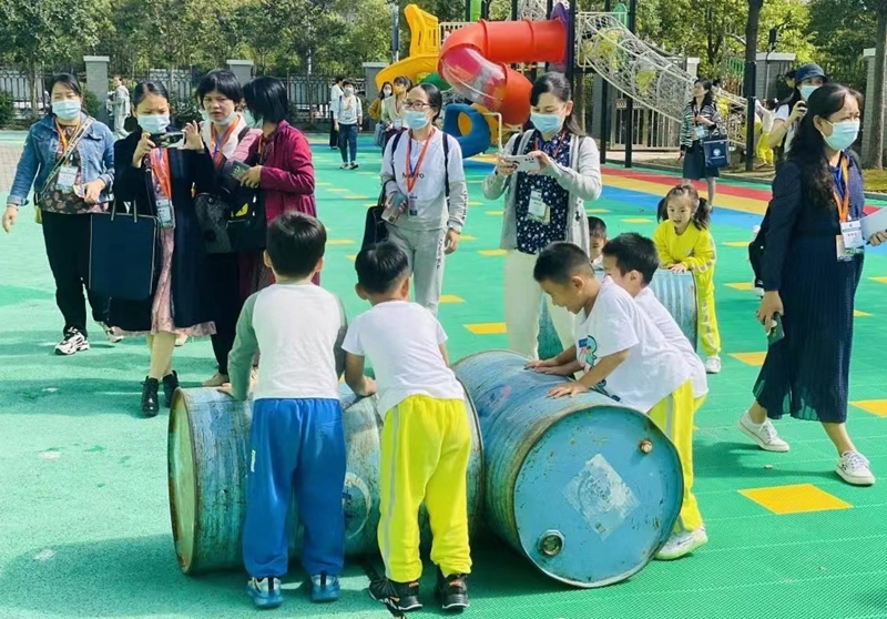紧接着学员们分为两组走向室外进行参观,参观幼儿园丰富多彩的户外活动、社团活动和区域活动,与园所的教师沟通、交流游戏中的思路,把孩子的世界还给孩子,紧紧追随幼儿脚步的理念给大家留下了深刻的印象!
