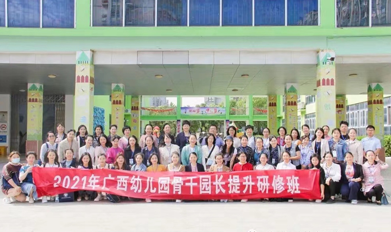 2021年10月12日上午,广西幼儿园骨干园长提升研修班的学员们来到经济技术开发区幼儿园观摩学习。