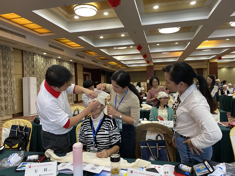 2021年10月17日,广西国培班的园长们上午聆听了祁晓霞园长的讲座,下午跟随荣中祥队长学习了应急救护知识,并进行了应急救护技能的实操训练。