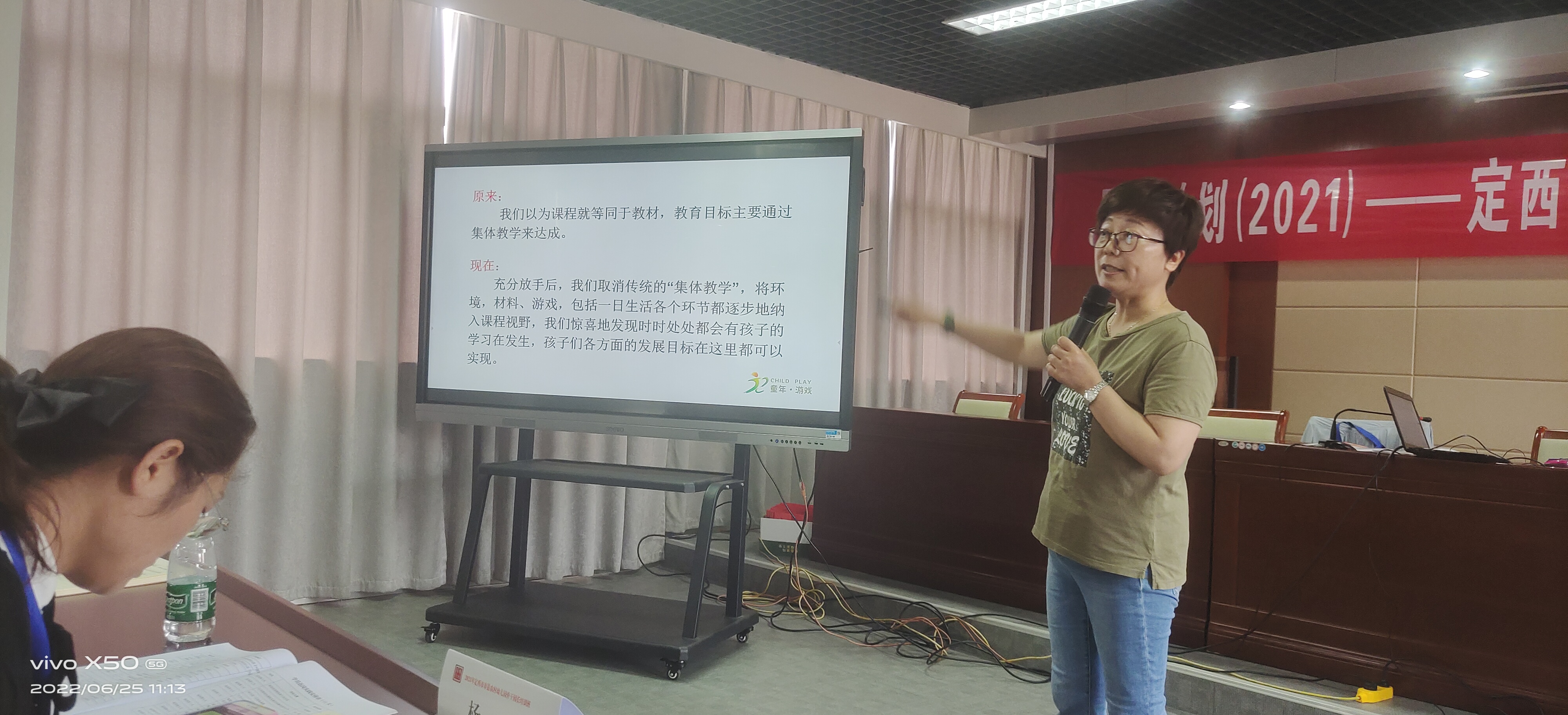 2022年6月25日,特级教师章兰园长在学海路校区为定西市农村幼儿园的园长们做了《在课程变革中看幼儿园发展规划》的讲座。50名园长全部出席。