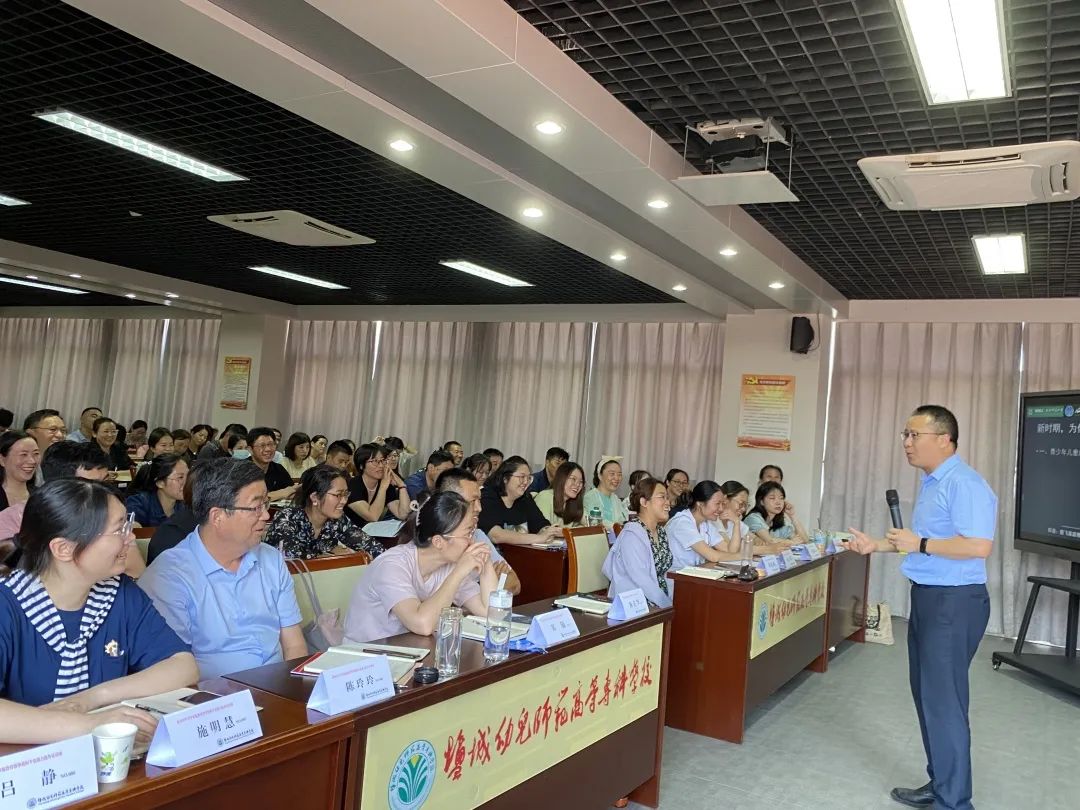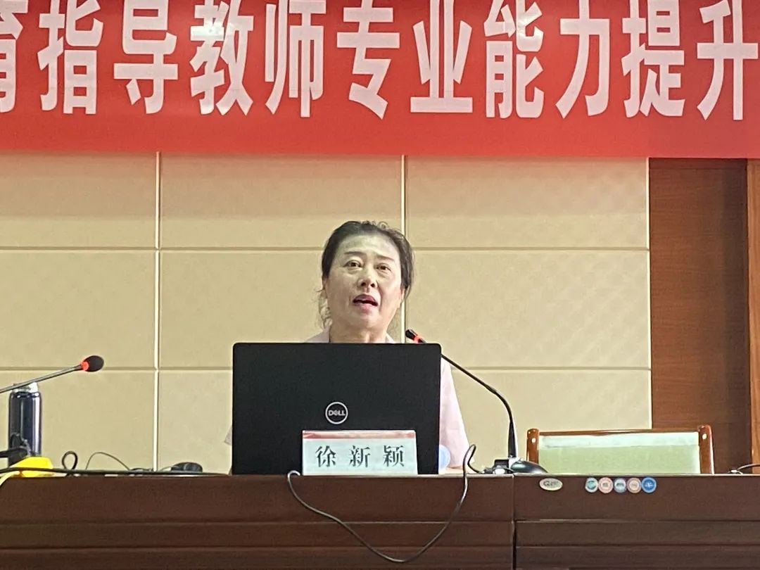 2022年8月6日,在学海路5楼会议室,徐新颖院长和殷飞院长为我市80位参加中小学家庭教育指导教师专业能力提升培训的学员开设了2场高质量的讲座,王会珍副院长主持讲座。