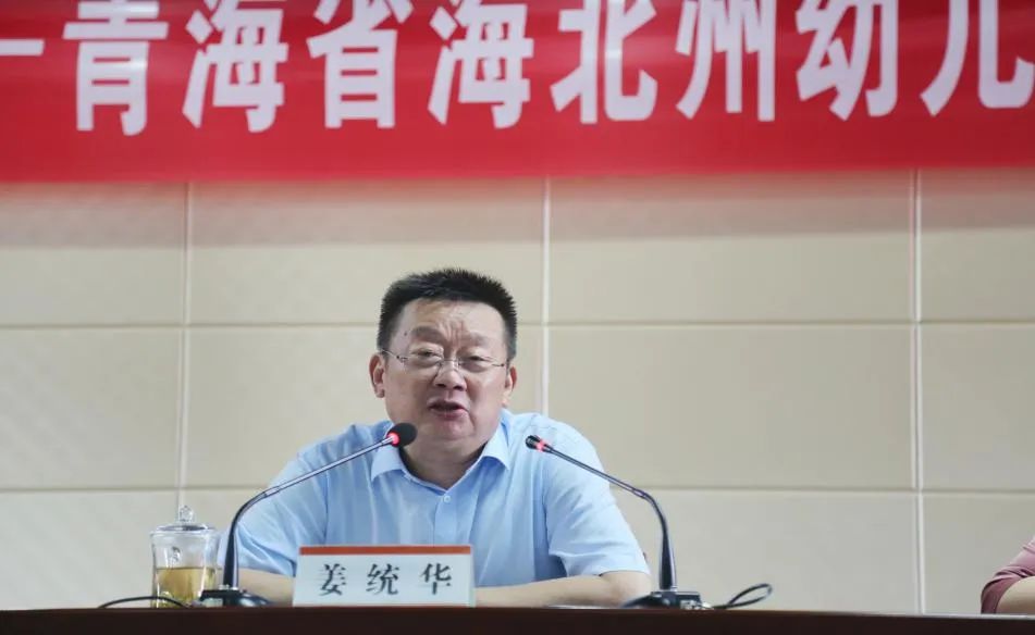 盐城幼儿师范高等专科学校校长姜统华作致辞。在讲话中他代表盐城幼专欢迎青海省海北州幼儿园园长的远道而来,通过富有文采的话语生动地介绍了盐城以及盐城幼专,并对本次培训的部署进行了简要说明。为了顺利完成培训工作,他强调:希望大家提高思想站位,以“空杯”的心态参加培训;希望大家快速转变角色,以“断舍离”的行动参加培训;希望大家关注各项安全,以“自觉者”的标杆参加培训。