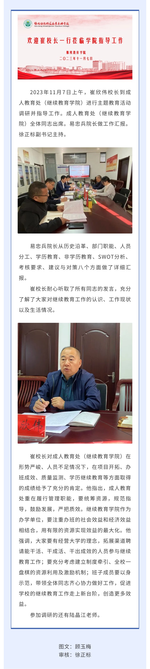 崔欣伟校长莅临成人教育处(继续教育学院)调研指导