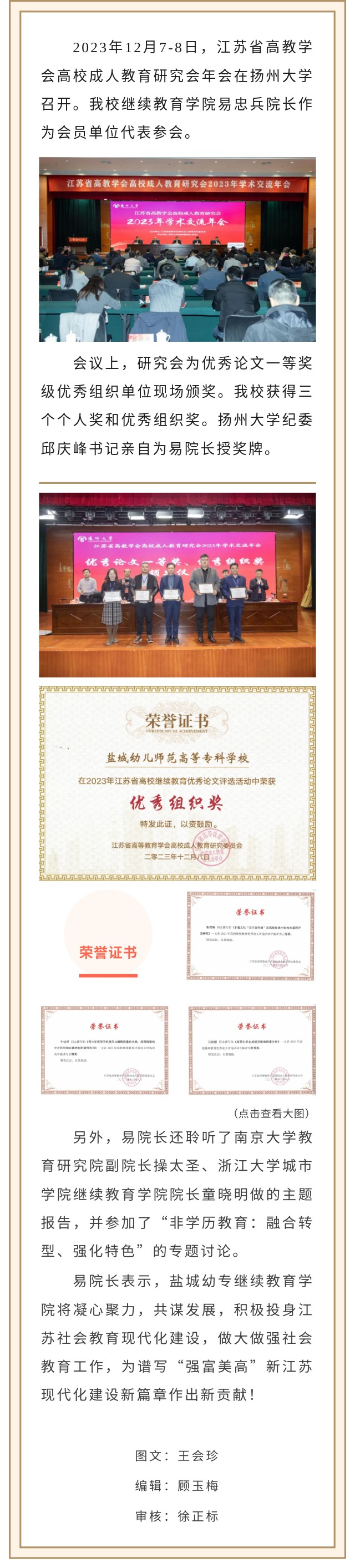 我校参加江苏省高教学会成人教育研究会2023年年会并获奖