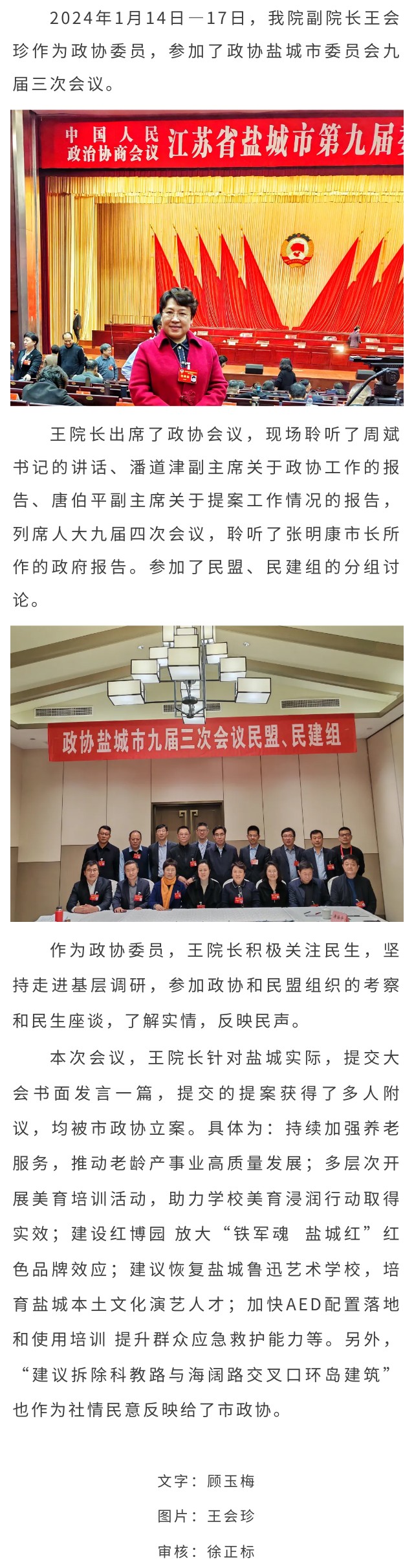 王会珍副院长参加市政协九届三次会议