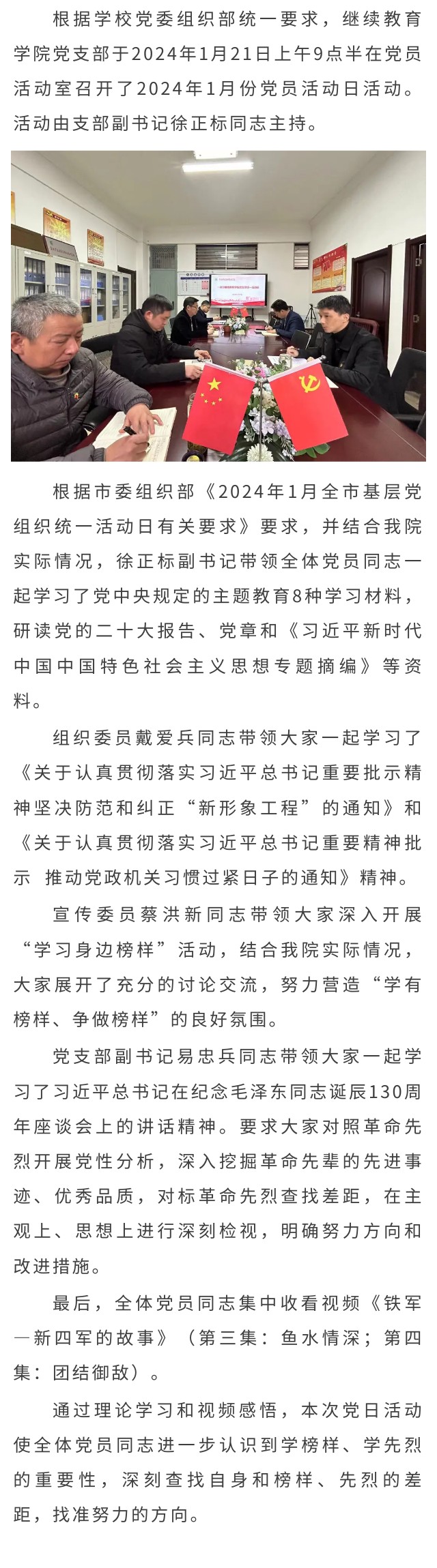 学身边榜样 树实干之风——继续教育学院召开2024年1月份党员活动日活动
