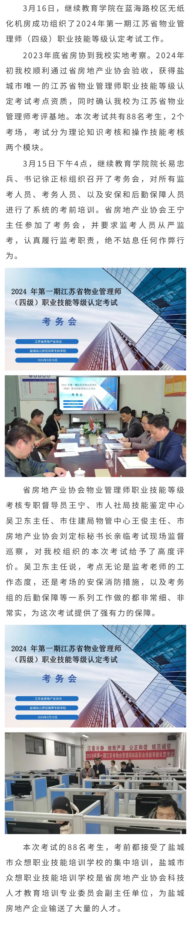 我校成功组织2024年第一期江苏省物业管理师(四级)职业技能等级认定考试工作