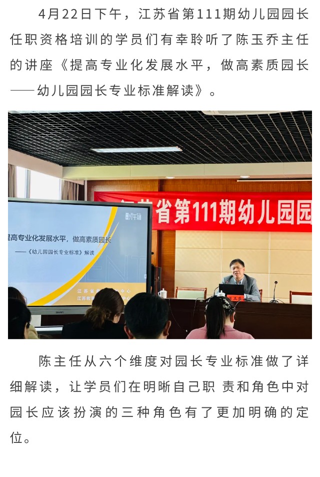 提高专业化发展水平,做高素质园长 ——陈玉乔解读幼儿园园长专业标准