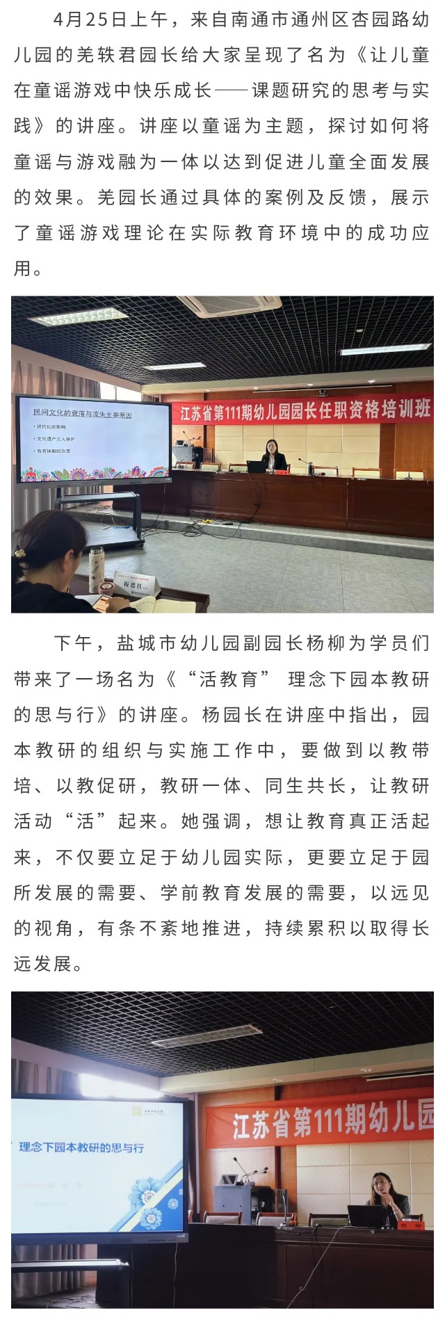 思考研究促成长 远见视角促发展——江苏省第111期园长任职资格培训班第四天