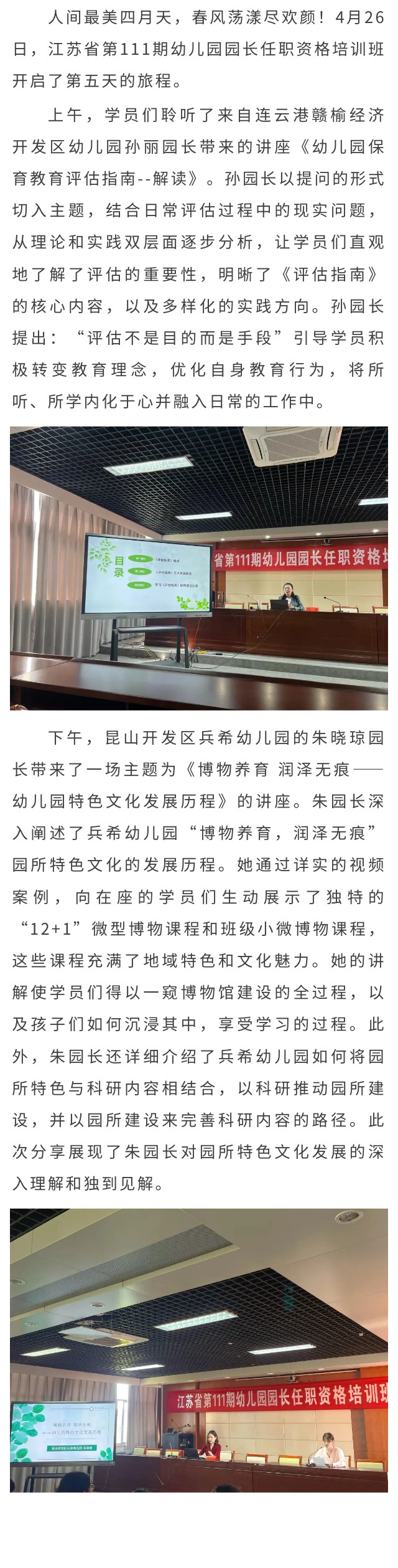 评估推动持续发展,特色构建卓越园所——江苏省第111期幼儿园园长任职资格培训班第五天