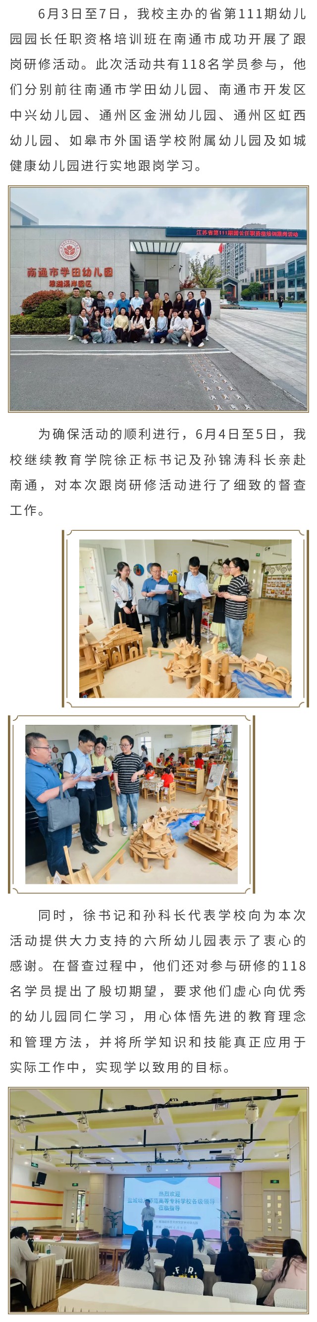 第111期幼儿园园长任职资格培训班在南通跟岗研修