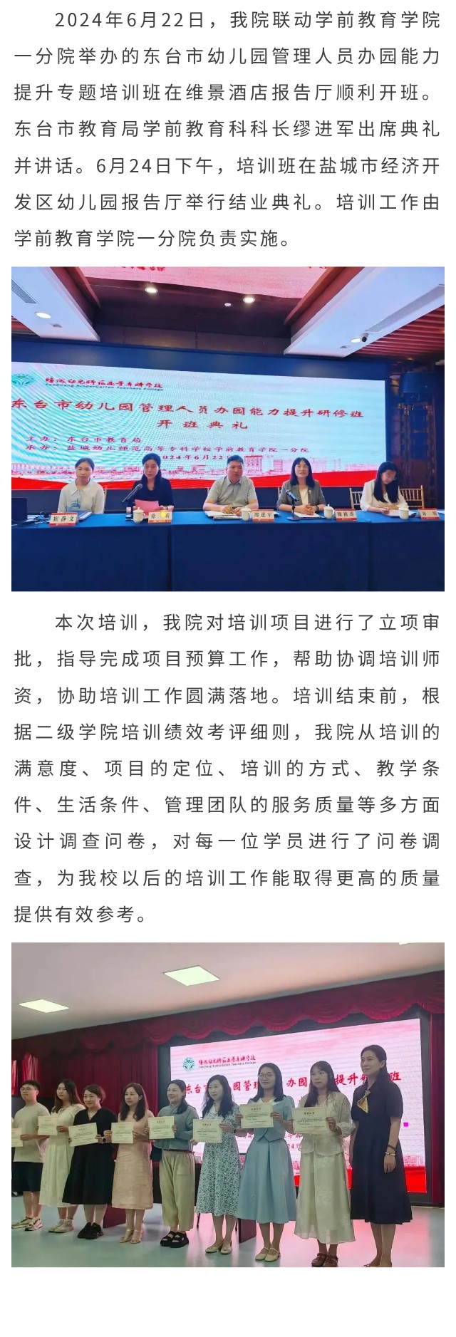 东台市幼儿园管理人员办园能力提升专题培训班 顺利开班、结业