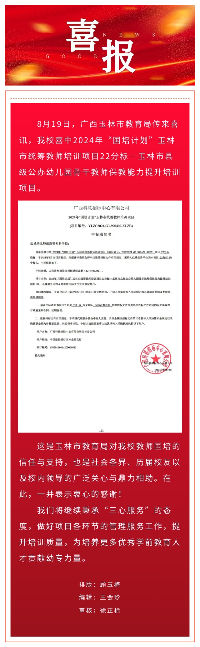 喜报:我校喜中2024年“国培计划”玉林市统筹教师培训项目22分标