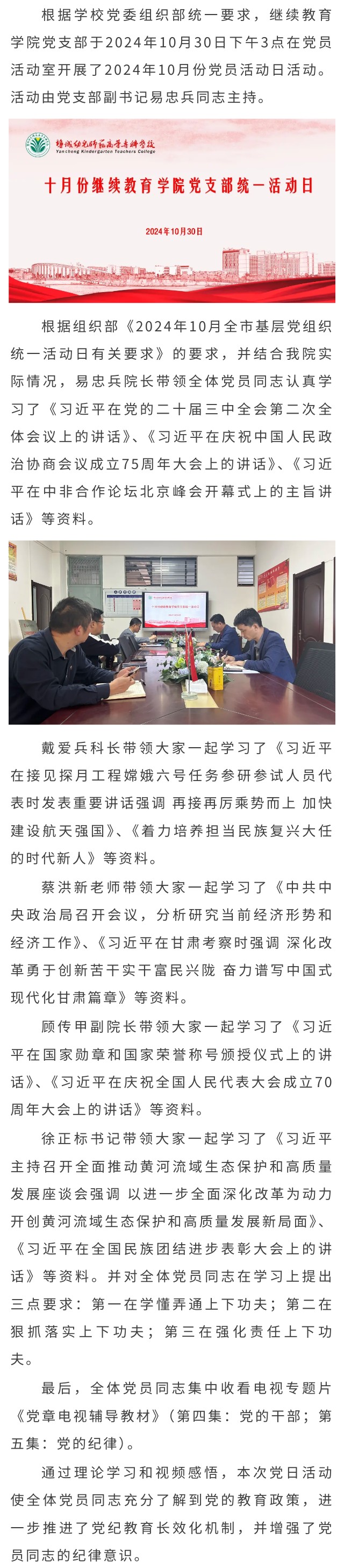 学原文 读原著 悟原理 ——继续教育学院党支部开展2024年10月份党员活动日活动