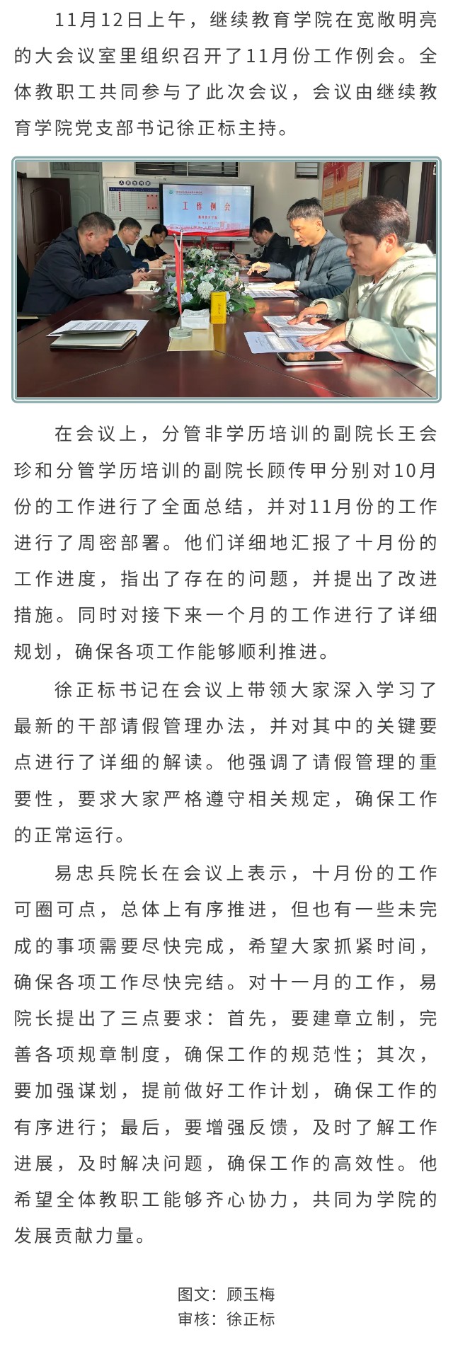 继续教育学院组织召开11月份工作例会