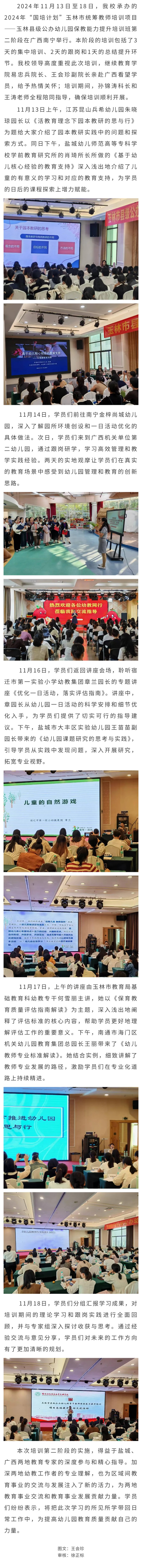 百尺竿头,更进一步 ——2024年玉林县级公办幼儿园保教能力提升培训班第二阶段在广西南宁实施